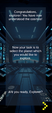 Intro screens for the second minigame, which keeps consistent styling. Depending on the planet the player chooses during this intro phase, the spacesuit they have to construct in the next game section changes.