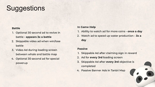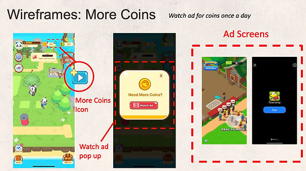 Our proposal was met with positive feedback from our direct boss as well the majority of the design team. We tried to implement ads in places that would not be too intrusive to the player. Instead, we wanted the player to seek out watching ads in exchange for rewards that they want. By limiting the amount of times they can watch ads per day, it gives the player more incentive to watch the maximum amount of ads when they can. We prioritized respawn and speed up ads highly as those are things the player wants and would therefore choose to watch an ad for. We prioritized the banner ads low because we thought they may take away from the immersion of the game.